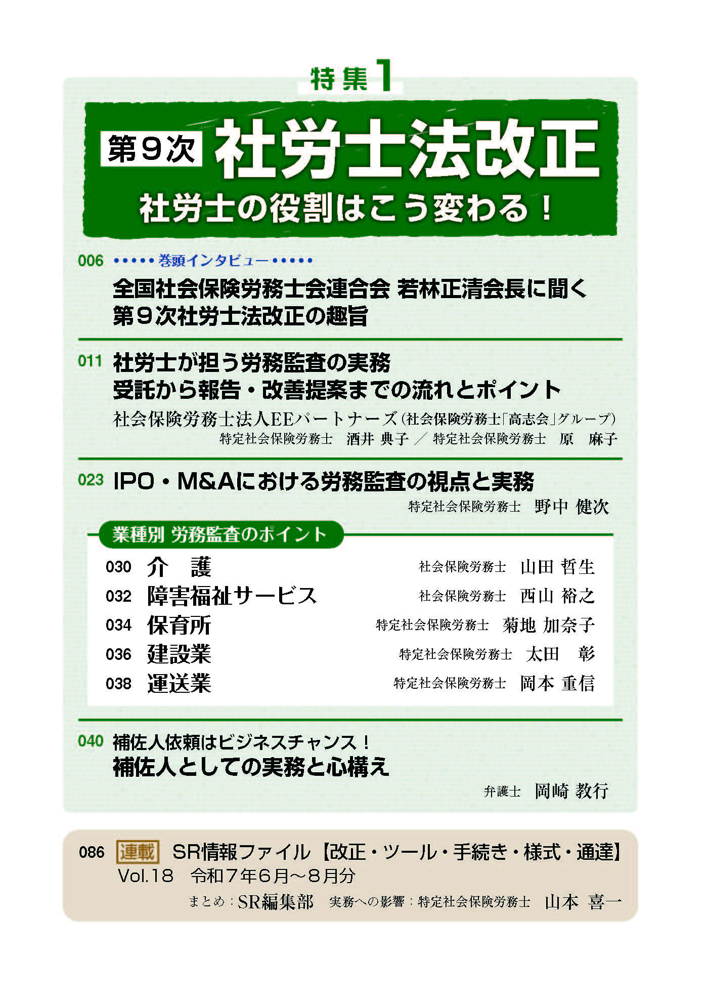 新着情報 SR第80号(日本法令) 2025.10.30 開業社労士専門誌SR第80号(日本法令/2025年11月5日発売)業種別労務監査のポイント「介護」について、執筆させていただきました。ご興味ある方は、是非ご覧ください。 Tweet Share +1 Hatena Pocket RSS feedly Pin it SR第79号(日本法令)